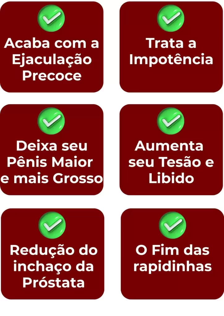 Promove a saúde dos corpos cavernosos para que sejam mais elásticos e armazenem mais sangue, aumentando o fluxo sanguíneo para o pênis para dar mais tamanho e grossura, garantindo ereções firmes e o fim da ejaculação precoce.